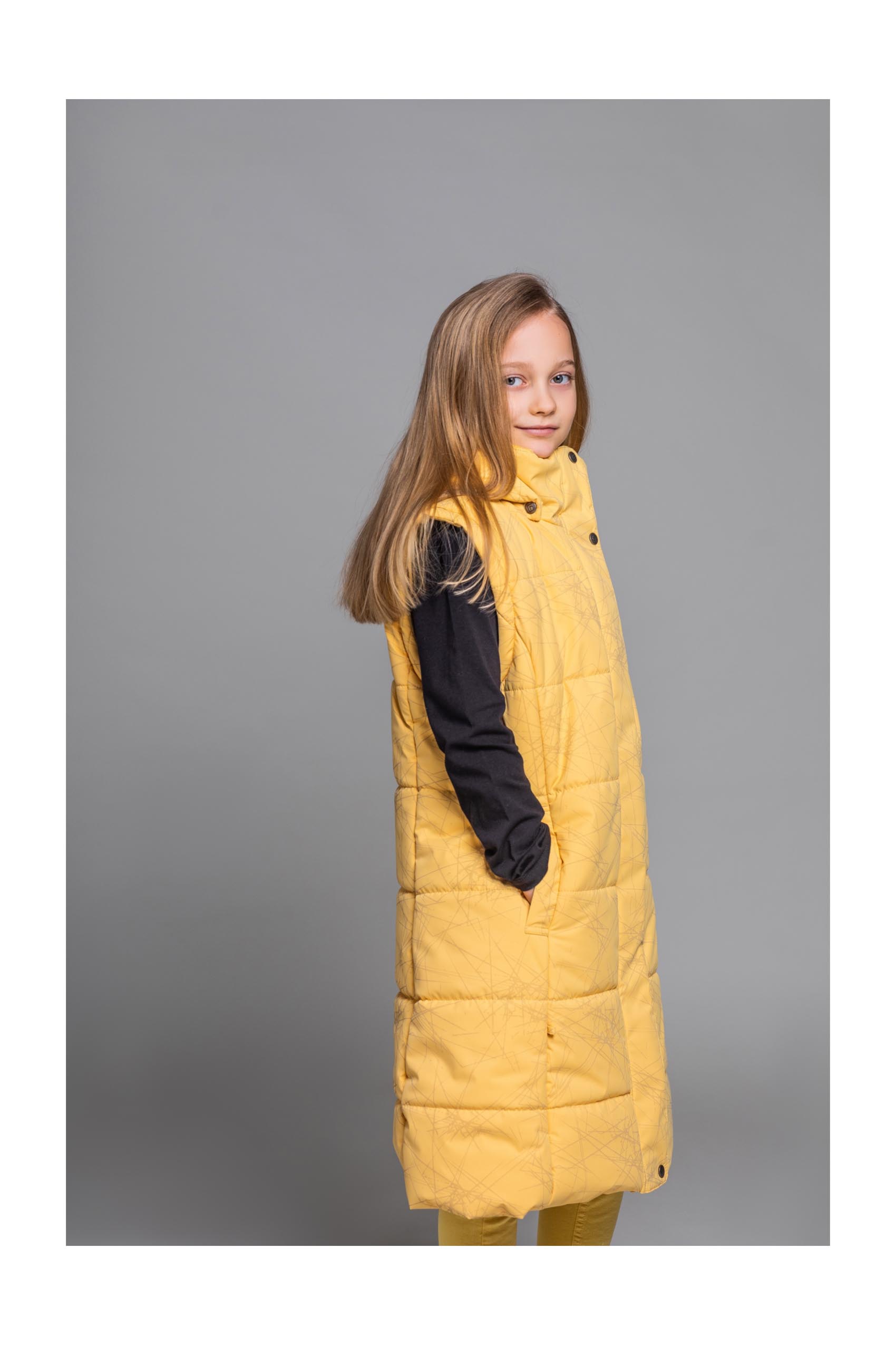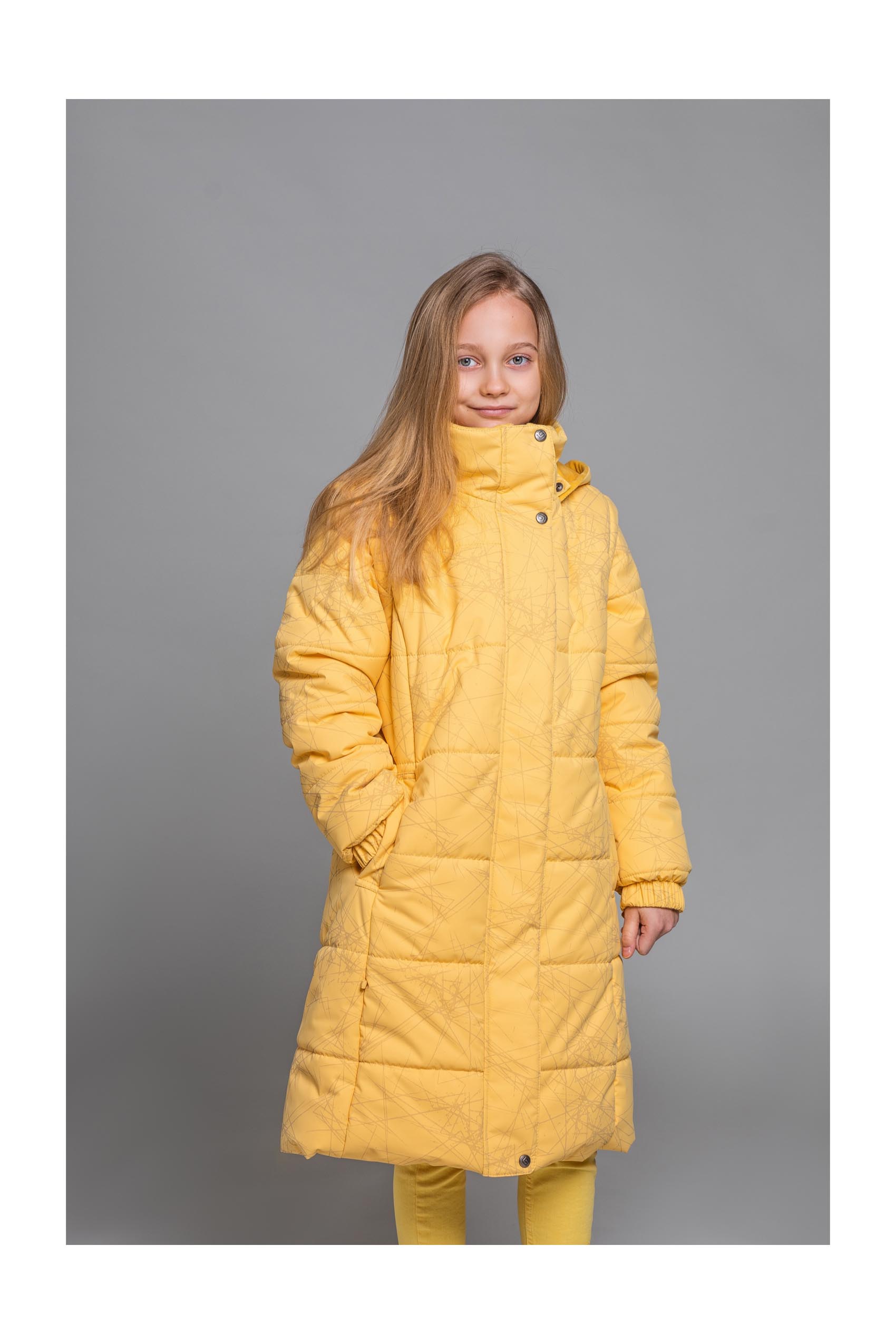 Pehmest ning ilmastikukindlast materjalist tüdrukute mantel on klassikalise ning naiseliku lõikega. Mantli esiküljel on kaks lukuga taskut, kuhu panna koduvõtmed ja telefon. Mantli disainis on kasutatud helkurdetaile, mis muudavad lapse nähtavaks ka pimedal talvel. Mantlil on trukkidega eemaldatav kapuuts ja eemaldatavad varrukad. Toodet saab kanda ka vestina.